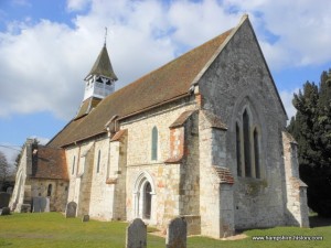 St Mary the Virgin East Worldham was built in its present form in the C13th but quite obviously sits on the site of a much earlier Anglo Saxon building. Its position is no accident. An ancient forest track on the road to Alton meets another at a crossroads here and next to the church runs an old Roman road on route to Silchester. There has therefore quite possibly been a place of worship on the site since Pagan times.